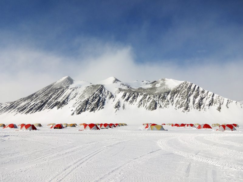 Staff accommodation area at Union Glacier Camp, with Mount Rossman behind