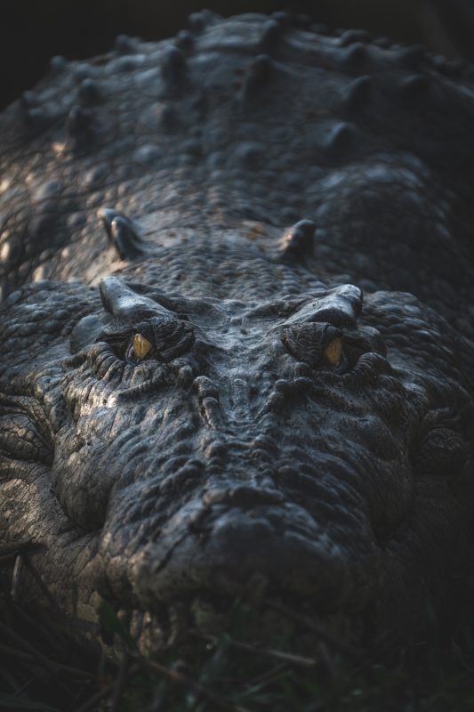 With more than 10,000 crocodiles in Kakadu National Park, it doesn’t take us very long to find our first, a three-metre juvenile patrolling its small patch of turf on the South Alligator River. The golden light shimmers off its ridged scutes as it slowly sinks into the water leaving barely a ripple. It has always fascinated me how these big animals can cause almost no disturbance to the water surface. Crocodiles have been around since the time of the dinosaurs – millions of years to evolve into a super predator, millions of years for every aspect of its prehistoric design to be refined and perfected. It’s often said that, with a brain the size of a walnut, the crocodile relies more on instinct than on intelligence. This can be seen in their elaborate hunting strategy that they have perfected with every sense for an existence at the top of the food chain. They are ambush predators that lay and wait for hours on end, hoping that an animal will come down to the water to drink in the exact spot where they are waiting, submerged amongst the reeds. There’s an old saying here in Australia, “never fish in the same spot twice”, and with these super predators potentially lurking only feet below the water’s surface here in Kakadu National Park, it’s easy to see why.