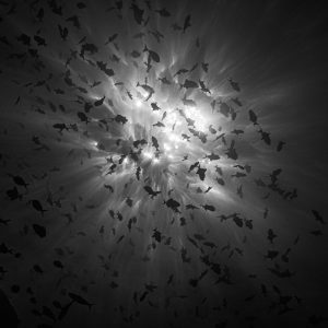 One of my favourite pastimes, however, is night diving with nautiluses. At night, you can witness an entirely different fauna underwater, one that unveils its magic in the moon light. When all the elements are on your side, you’ve got a great chance to see these pelagic marine molluscs. They use the cover of night to leave their deep hideouts. Some of the nautiluses prefer cold winter water and the light of the full moon to come out, while others are drawn to the darkness of a new moon night. The gorgonians are, undoubtedly, the most spectacular stars of the show along with the nautili ballet. Another highlight you can witness during the night are sleeping parrotfish. They secrete mucus from their glands to sleep in a transparent cocoon that protects them from parasites such as bloodsucking isopods at night. The process of creating the cocoon takes around an hour. But be careful not to shine your light directly at them or use a blue light instead of a red one which uncovers countless details that they conceal in the daytime. It’s an incredible show that always reminds me of a Christmas tree, filled with coloured lights and blue highlights.