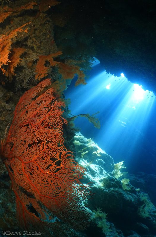 Cape Martin’s waters, on the other hand, are famous for enormous gorgonians that decorate the reefs, vaults and vertiginous edges of the reefs. Many species of sharks such as grey reef, leopard or whitetip reef sharks can be observed here. If you’re lucky, you might even see a tiger or silky shark from time to time. And while you look for leafy scorpion fish and rhinopias on the below the surface, be sure to look up as an abundance of gannets and frigate birds circle high above your head.