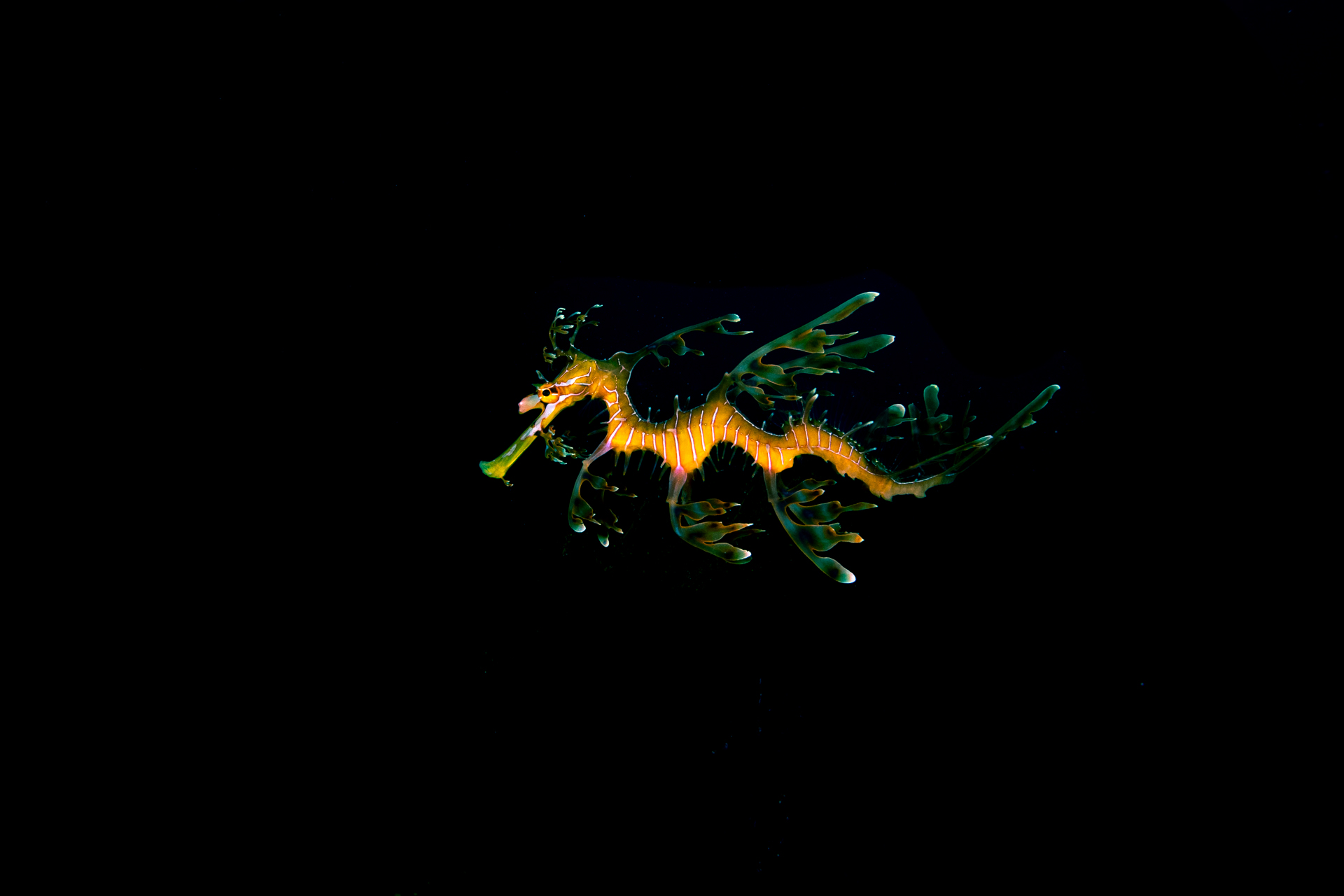 While the sheer variety of creatures that reside in the marine environment is somewhat incomprehensible, there is one delicate and little known species that has become my obsession. Weedy Seadragons (Phyllopteryx taeniolatus) have fascinated me ever since I first heard of their existence – I couldn’t believe these intricate creatures existed in my own backyard. Part of the sea horse family, Syngnathidae, they are only found along the southern coasts of Australia generally in the cooler temperate waters. The first time I finally saw one while out diving, I followed it for as long as possible, almost neglecting my air consumption. I hadn’t realised just how big it would be, how detailed it’s patterns. I held my breath to listen to the snap of their proboscis as they feed on the tiny mycid shrimp.
