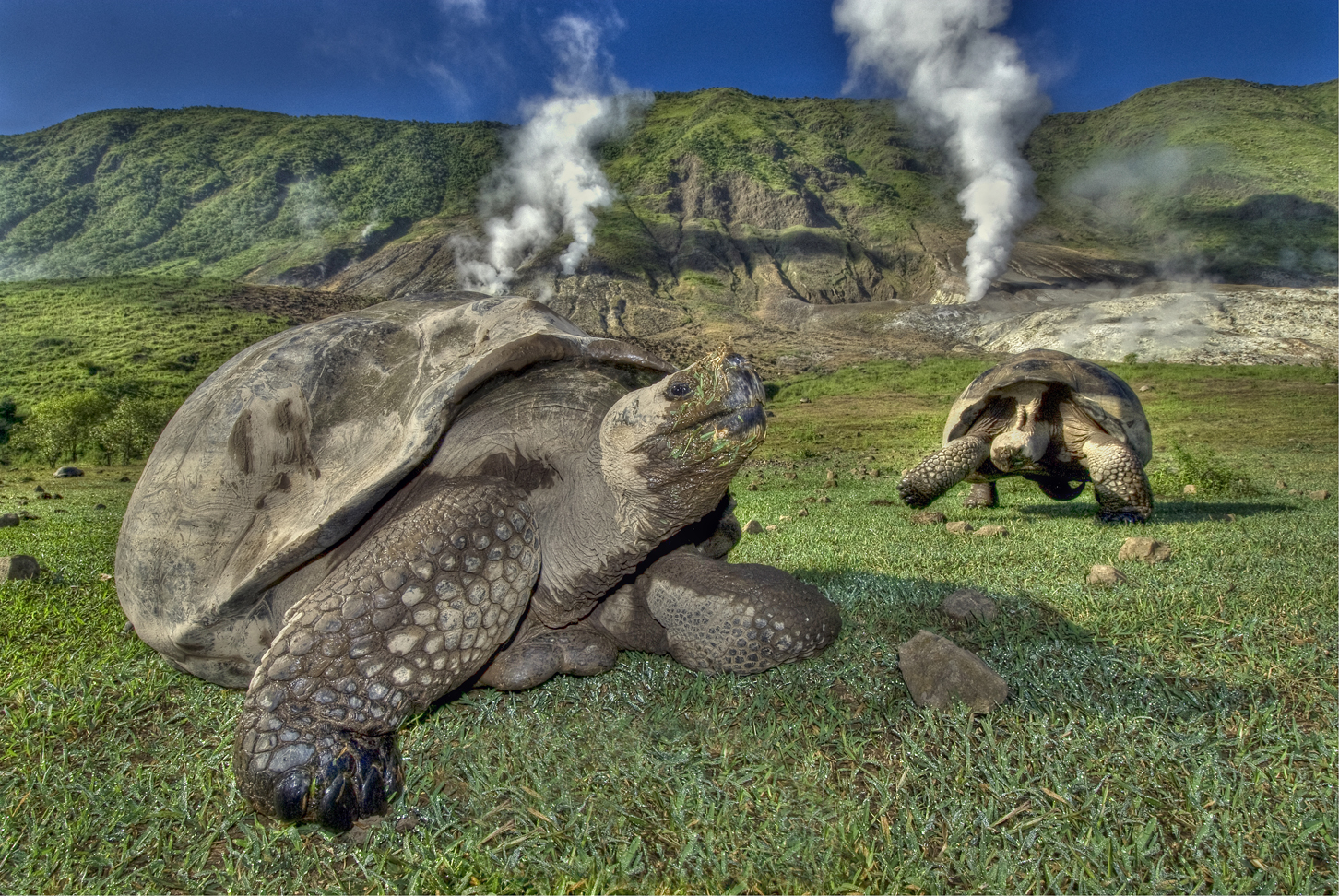 If you are on Santa Cruz, before lunch you might have dived the submerged volcano crater of Gordon Rocks, finding yourself in the middle of schooling scalloped hammerhead sharks, with squadrons of eagle rays flying below you and the occasional mobula ray or mola mola cruising through. If, that is, the pesky turtles, whitetip sharks, blacktip sharks and sea lions get out of the way long enough for you to see. Or you could have been walking through the highlands surrounded by the lumbering ancient Galapagos giant tortoises that so inspired Darwin. It’s easy to see why the place provided him with such food for thought. And I haven’t even mentioned the birdlife.