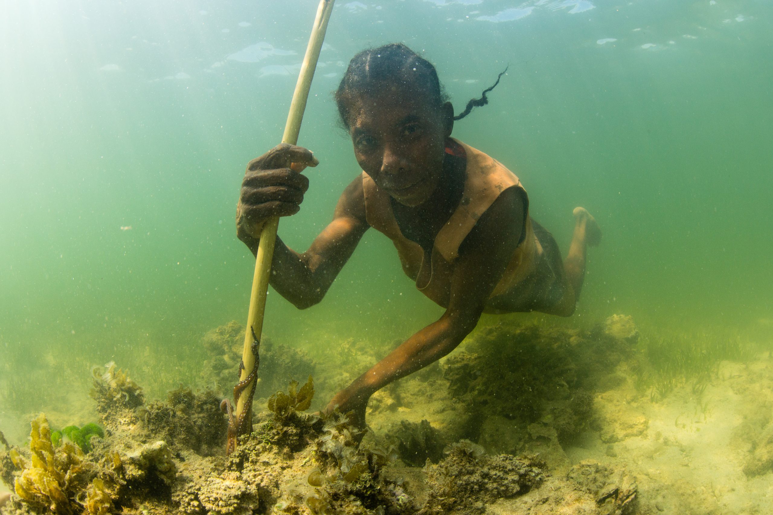 Vezo fisherwoman diving for octopus