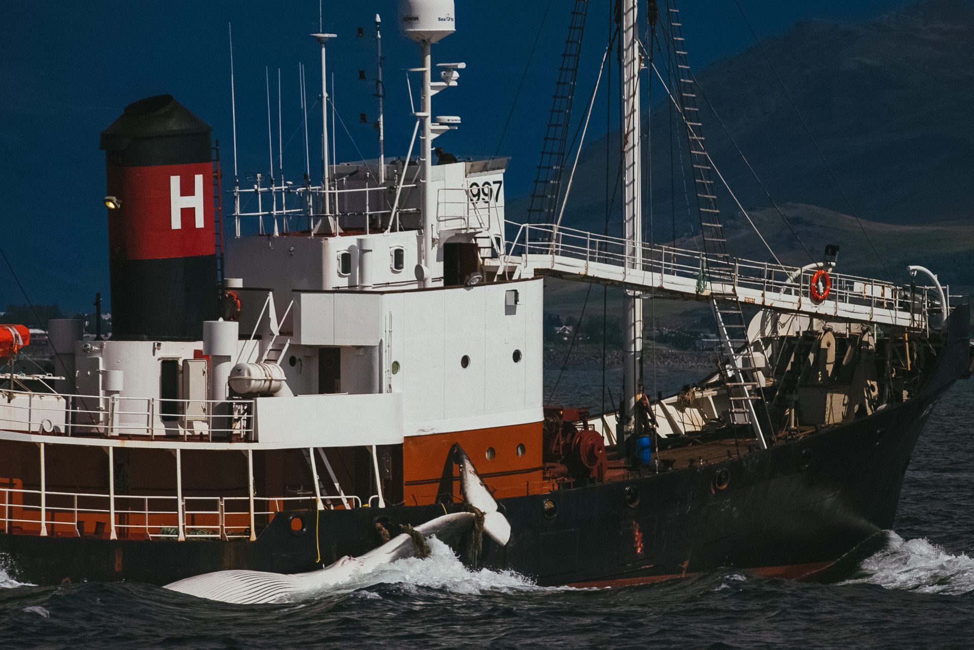 Despite a steep decline in the demand for whale meat and support for whaling in Iceland, Kristján Loftsson continues his whaling business each year, permitted by the government of Iceland to hunt up to 161 fin whales per season. Due to the lack of demand locally (a 2018 survey revealed that only 2% of the population regularly purchases whale meat) most of the whale meat gets sold and exported to Japan. After a recent investigation into Kristján’s financial records, his books showed that not even the Japanese market is that interested in whale meat anymore and he is busy making a loss. Kristján Lofson and his men have now slaughtered more than 1,800 whales since the ban on commercial whaling was instated in 1986. Iceland refuses to recognise the ban and currently allocates its whalers a quota to kill both endangered fin whales, as well as minke whales.