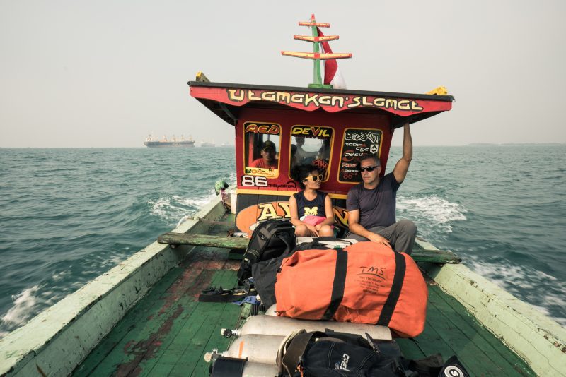 Ian on a Indonesian boat talking with a woman