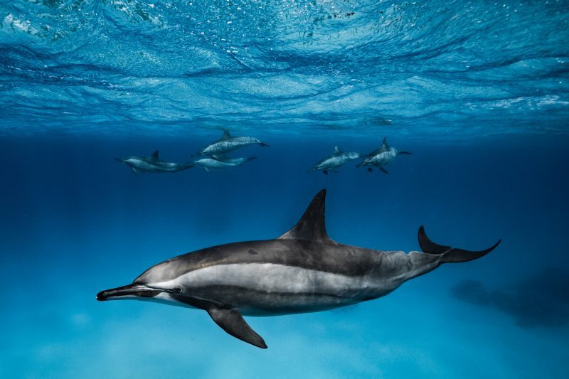 "This large pod of spinner dolphins hunt in the open ocean during the night before returning in the early morning to the Sataya reef lagoon to rest," says photographer Lucie Pollet. "They spend the day in the lagoon to rest, play, mate and learn. On this particular morning, the dolphins were curious and in a playful mood. We spent two hours with them, interacting. My heart was jumping with happiness and excitement. It was an amazing encounter."